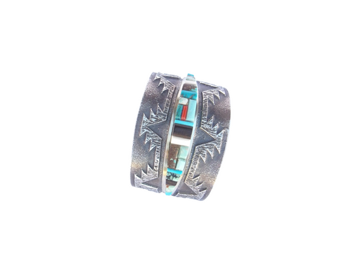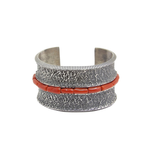 Aaron Anderson Silver Stamped with Coral Bracelet